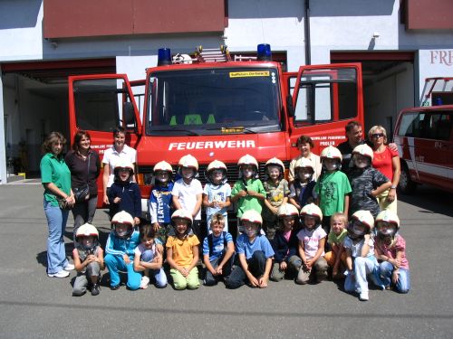 Nach einem Rundgang durch das Rüsthaus, wurden die Ausrüstung und die Einsatzfahrzeuge, ausführlich von den Schülern/innen besichtigt.