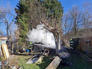 Zwei Gartenhütten waren in Brand geraten. Zudem hatte das Feuer auf nahestehende Bäume übergegriffen.